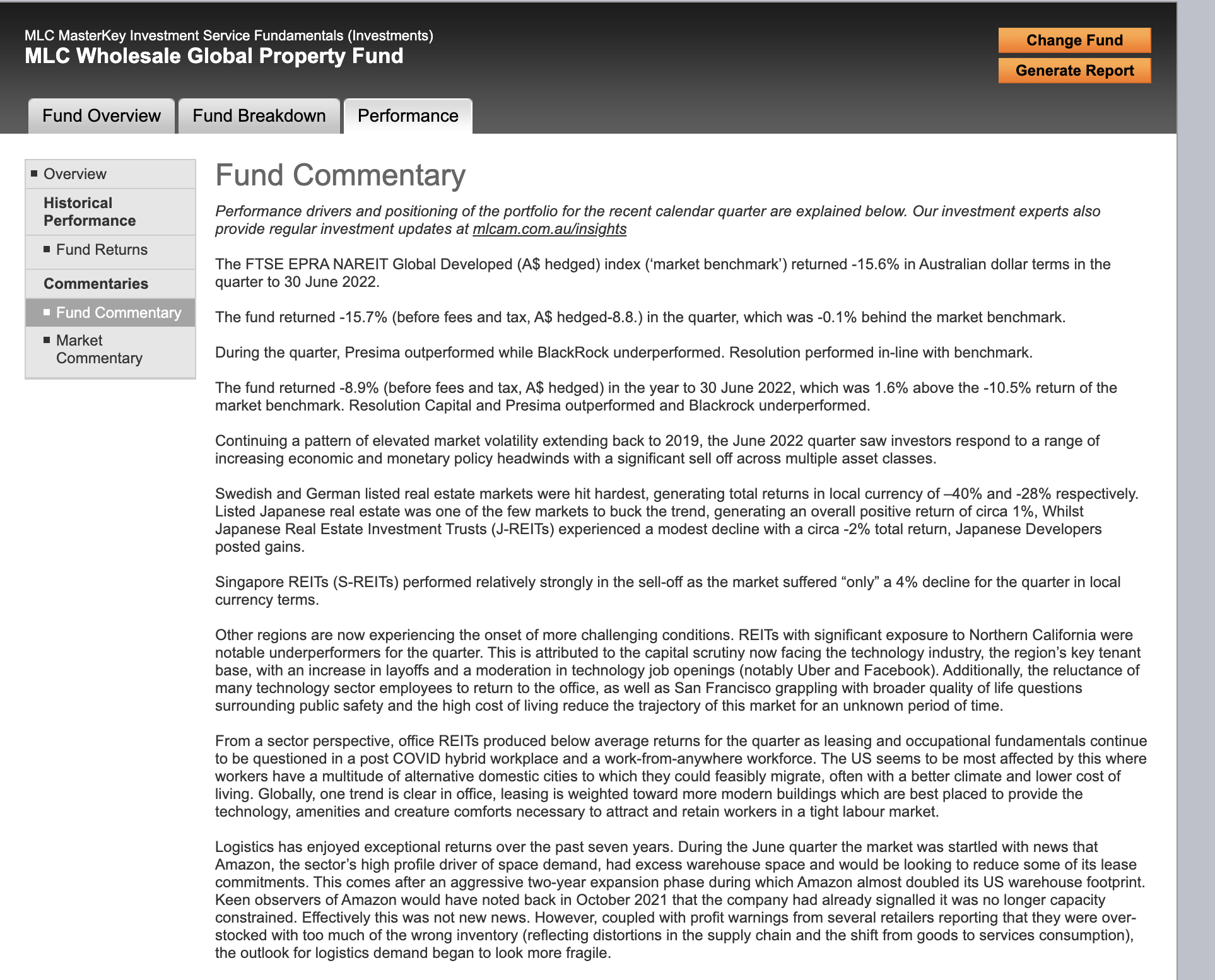 File: https://commentary.quantreports.net/wp-content/uploads/2021/02/Fund-Profile-Tool-Fund-Commentary-MLC-GLOBAL-PROPERTY.pdfJune, 2023