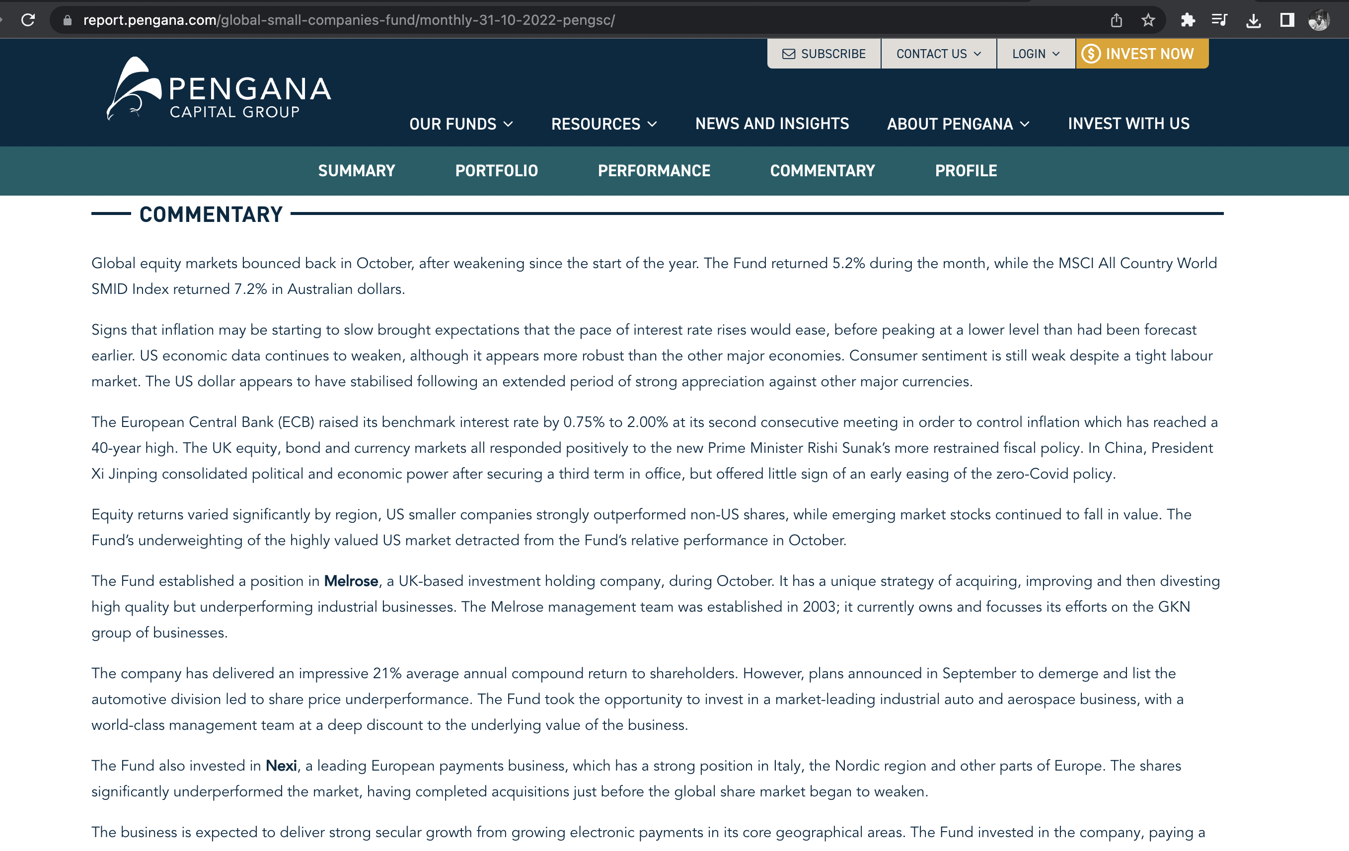 Global equity markets bounced back in October, after weakening since the start of the year. The Fund returned 5.2% during the month, while the MSCI All Country World SMID Index returned 7.2% in Australian dollars.