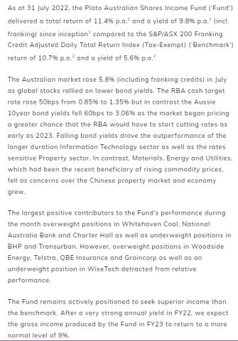 File: https://commentary.quantreports.net/wp-content/uploads/2021/01/Plato-Australian-Shares-Income-Fund-Monthly-Report-3.pdfJuly, 2022